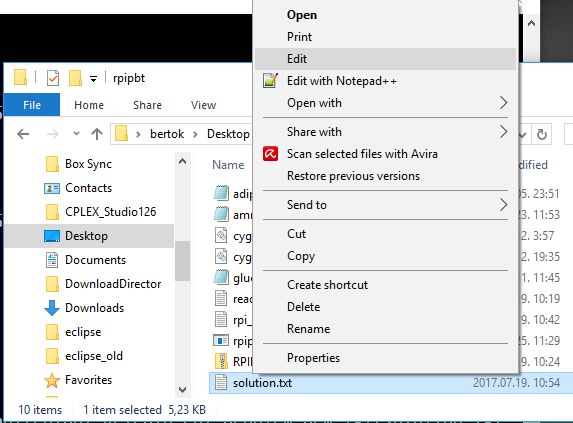 19. Click on file “solution.txt” by mouse button 2 and select “Edit”