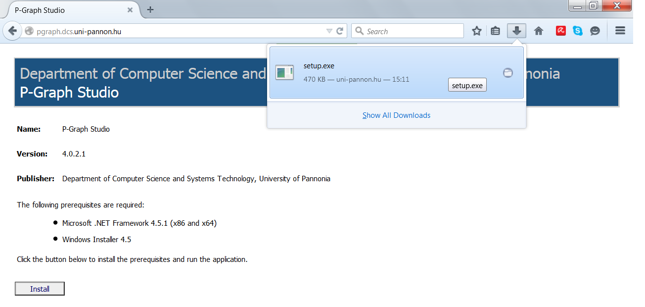 1. To download the software, first You have to visit http://p-graph.org/pgraphstudio/ and click on the Install button.