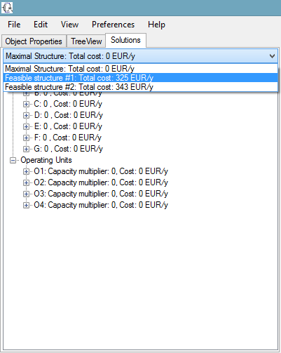 Choosing a solution, You can see the structure by disabled elements given with gray color. The properties (i.e. the quantities, prices, etc.) of the elements of a chosen solution can be seen on the “Solutions” panel.